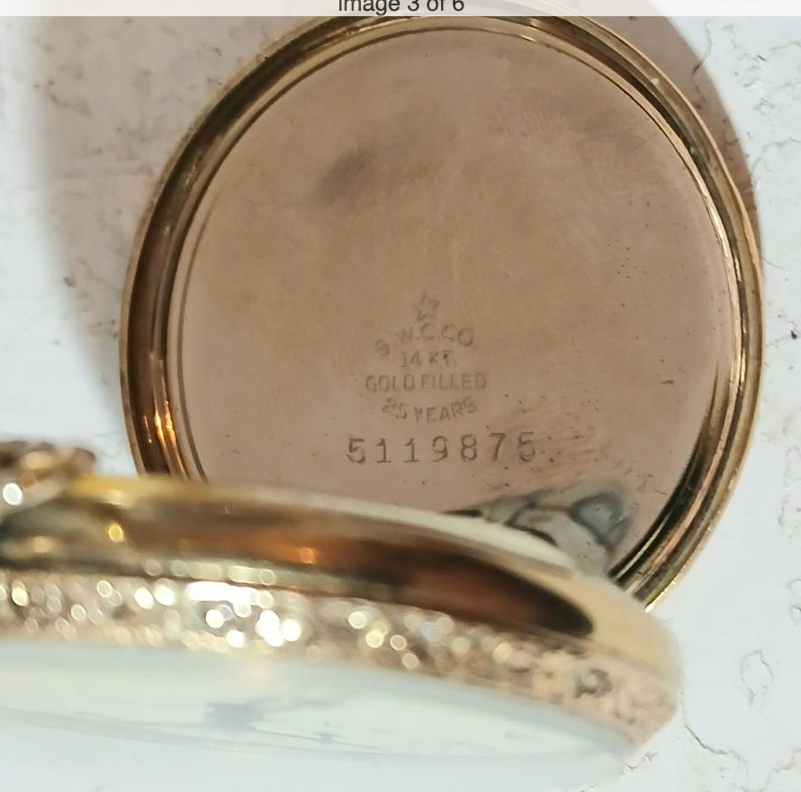 The total gold value of the gold filled case of the pocket watch is approximately ninety five dollars which is done by making a very detailed computation and it is an accurate amount